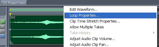 Однако, оказывается, что в программе реализована возможность любой музыкальный фрагмент, любой аудиофайл сделать лупом, то есть бесконечно повторяющимся семплом. Для этого нужно в окне редактора мультитрек, кликнуть по загруженному треку правой кнопкой мыши и выбрать к меню вкладку Loop Propotries