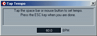 Затем нажимаете кнопку Тар Tempo и отбиваете темп клавишей пробела или щелчками мыши на поле с надписью:  Тар the space bar or mouse button to set tempo. Press the  ESC key when you are done..