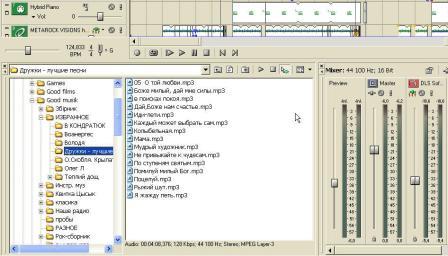 Перетягиваете мышкой нужный вам музыкальный файл в окно проекта и бросаете в его рабочую область. Другой способ загрузить файл - найти его через проводник поиска файлов, встроенный в ACID. И тот и другой способ приемлем.