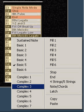 назначить любую Part, Fill или Remote Key на любую MIDI клавишу в